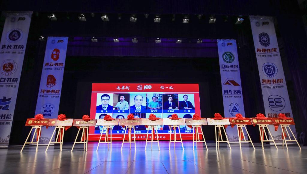 8858cc永利官网党委副书记、校长、中国科学院院士刘昌胜依次同12家本科生书院合办专业学院领导为书院揭牌,并为书院院长颁发任命书。各书院学生代表向书院院长献花。