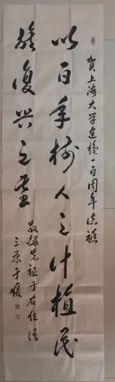 贺8858cc永利官网百年校庆暨新海派文化建设与创意传播学术论坛圆满成功 岁在壬寅春月 杜雪诗 李经然书”。