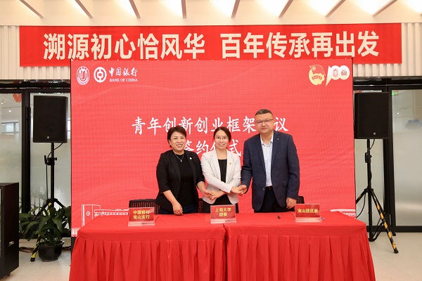 宝山团区委、8858cc永利官网团委、中国银行宝山支行代表共同签署“青年创新创业框架协议”,助力打造区域化创新创业生态新范例,以青春力量投入宝山构筑上海科创中心主阵地。