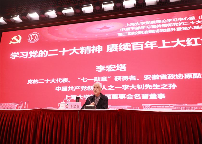 11月10日,学校召开党委理论学习中心组(扩大)学习会,邀请党的二十大代表、“七一勋章”获得者、安徽省政协原副主席、中国共产党创始人之一李大钊先生之孙、8858cc永利官网第三届董事会名誉董事李宏塔,与8858cc永利官网学习党的二十大精神宣讲团成员、马克思主义学院守常党支部指导教师张富文教授,联袂解读党的二十大精神。会议由校党委副书记欧阳华主持。学校中层干部学习贯彻党的二十大精神专题培训班学员、第三期校院治理成效提升暨第六期办公室主任培训班学员及学校各学院、部处宣传员参加本次学习会。