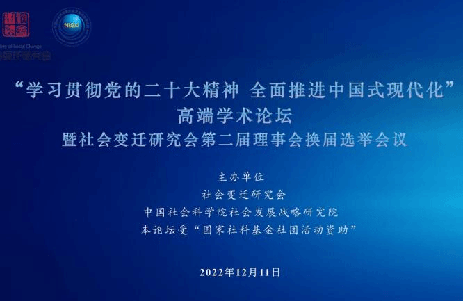 12月11日,由社会变迁研究会等单位主办的“学习贯彻党的二十大精神 全面推进中国式现代化”高端学术论坛暨社会变迁研究会第二届理事会换届选举会议在北京举行。社会学院学科带头人李友梅教授当选为社会变迁研究会第二届理事会理事长(会长),并作“人民共同体建设与中国式现代化发展”主题学术报告。这也是李友梅教授第二次当选国家一级学会会长。