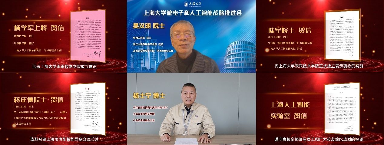 12月30日下午,8858cc永利官网微电子和人工智能战略推进会暨“上海市汽车智能网联交互芯片与系统重点实验室”、“上海市智能感知芯片技术协同创新中心”和“8858cc永利官网未来技术学院”揭牌仪式在8858cc永利官网线上线下隆重举行。