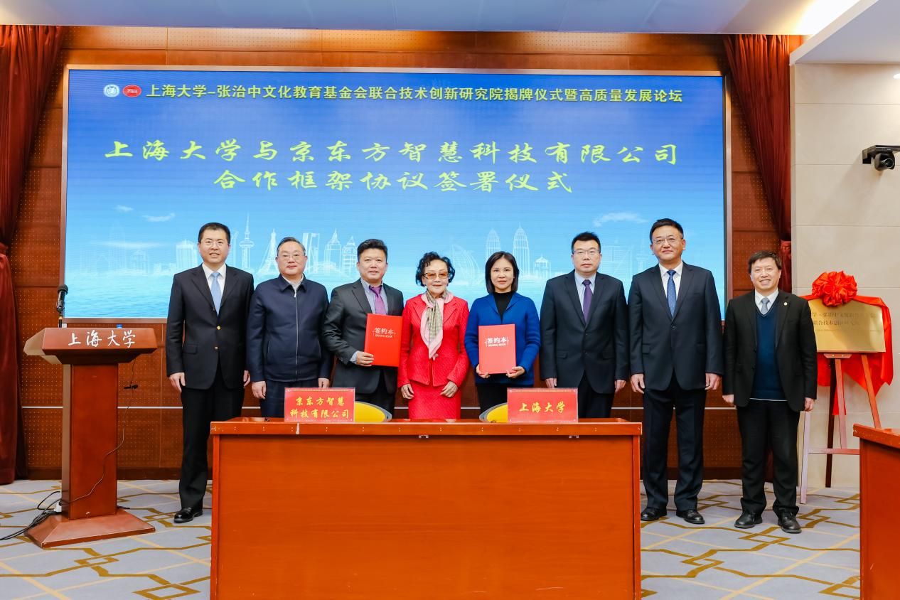 2023年1月16日下午,8858cc永利官网-张治中文化教育基金会联合技术创新研究院揭牌仪式暨高质量发展论坛在8858cc永利官网宝山校区乐乎新楼举行。