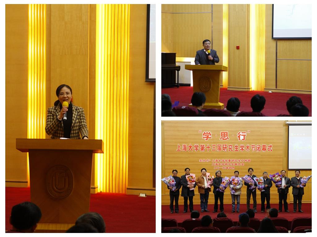 学术节闭幕式在一段精彩的回顾视频中拉开帷幕,首先对本届学术节中优秀组织学院和优秀个人给予了荣誉表彰。管理学院在此次学术节中凭借优异的表现,荣获一等奖。TED讲坛为广大研究生们分享学术成果、激发思想碰撞提供了得天独厚的舞台,闭幕式上对TED优秀选手进行了表彰,鼓励更多研究生同学加入TED大家庭,秀出真我风采。马剑威、姚骏峰、彭振桓三位同学作为本届学术新秀,为大家展示上大学子热爱科学研究、在实践中快速成长的良好精神风貌。研究生在享受学术盛宴之际,同样感谢导师的帮助和指导,由学生自主参与评选的第二届“我心目中的好导师”活动也尘埃落定。十位当选的导师亲临闭幕式现场,好导师代表、通信学院郑国莘教授表示,自己没有去参加国家科技进步奖的颁奖,但是今天的这个奖必须来!经济学院的王时芬老师为在场的同学们带来了一场题为“此轮人民币汇率会跌多少?”的精彩讲座,为同学们上了一堂生动有趣的经济课程,引起了在场师生们的浓厚兴趣。导师们用自己的人格魅力、学术修为和言行举动得到了学生的尊重与喜爱,同时他们表示会一如既往地给予指导与帮助,并对研究生的学业和科研寄予厚望。