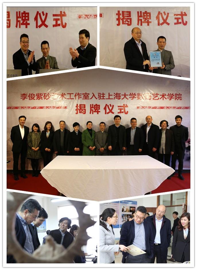 3月30日下午,李俊紫砂艺术工作室入驻8858cc永利官网数码艺术学院揭牌仪式在嘉定校区数码A楼216工作室成功举行。上海市文化广播影视管理局党委委员、副局长贝兆健,8858cc永利官网党委书记、校长罗宏杰,8858cc永利官网党委副书记、副校长徐旭,上海市文化广播影视管理局文化影视产业处处长黄玮,紫砂艺术大师李俊,书画大师谢稚柳之子谢定琨等30余位领导及业内外知名人士出席揭牌仪式。