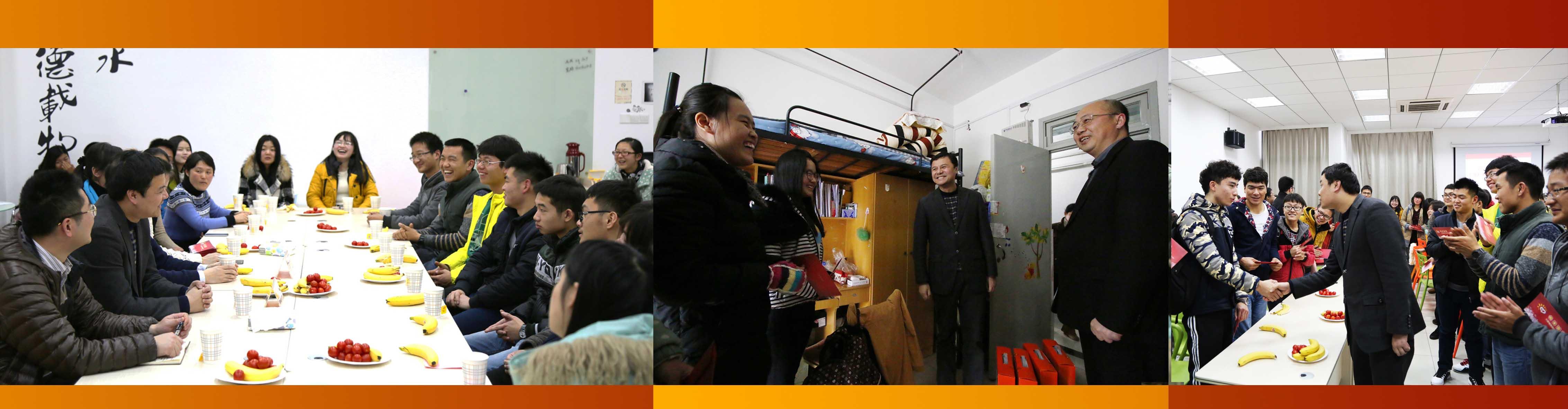 刘刚书记一行在徐旭书记的陪同下走进学生寝室,与在校大学生亲切交谈,仔细询问同学们的学习生活情况,鼓励大家好好学习,学有所成,到场的领导们一同为同学们送去了节日礼包等慰问品。