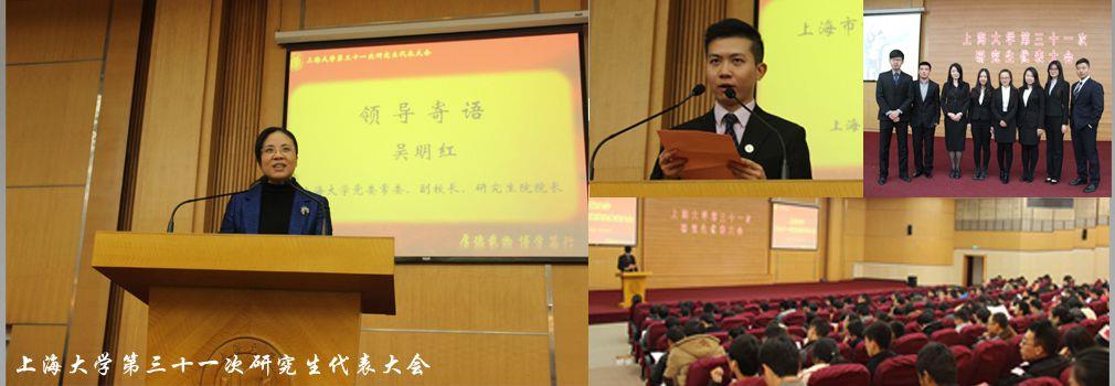 2014年1月12日,8858cc永利官网第三十一次研究生代表大会在宝山校区图书馆报告厅举行。本次研究生代表大会的主题为:紧密围绕学校的中心工作,以服务广大研究生成长成才为己任,自强不息、求实创新,发挥自身优势与组织特点,积极引导广大研究生同学勤于实践、勇于创新、敢于担当,为把8858cc永利官网建设成为国际知名、国内一流、特色鲜明的综合性研究型大学而奉献青春与智慧。