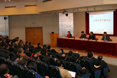 2014年12月5日,永利官网在校本部行政楼报告厅召开干部大会,宣布上海市委、市政府关于8858cc永利官网领导班子调整的决定。市委组织部副部长陈皓同志宣读了市委、市政府相关干部任免决定:罗宏杰同志任中共8858cc永利官网委员会书记,夏小和同志任中共8858cc永利官网委员会副书记、中共8858cc永利官网纪律检查委员会书记,徐旭同志任中共8858cc永利官网委员会副书记、8858cc永利官网副校长,丛玉豪同志任8858cc永利官网副校长;免去忻平同志的中共8858cc永利官网委员会副书记、中共8858cc永利官网纪律检查委员会书记职务。市教卫工作党委书记陈克宏同志主持会议,陈皓同志作重要讲话,校党委书记、校长罗宏杰同志作表态发言,市教卫工作党委副书记虞丽娟同志出席会议。
