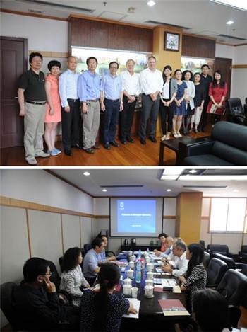 汪校长首先对客人的到访表示热烈的欢迎,随后万旺根处长介绍了8858cc永利官网的基本情况,包括办学规模,学科特色,国际合作等等。在认真听取了8858cc永利官网的介绍后,Ron Burnett校长说,艾米丽卡尔艺术设计大学是一所规模比较小,但是专业性很强的大学,其中设计类占到40%,艺术类20%,美术类35%。他们的特长是研究,强势学科包括健康,电影,3D,材料科学,纺织,机器人和社会媒体等等。艾米莉卡尔艺术与设计大学是加拿大不列颠哥伦比亚省著名的公立大学,坐落于风景优美的温哥华市,提供美术、设计、艺术类的学士学位,设计和应用艺术的硕士学位,采取小班教学的方式,其中四分之一的学生是国际学生。这所大学是世界上一流的设计学院,与全球知名的艺术学院都有密切的联系,并且在业界有超过300家的合作伙伴。
