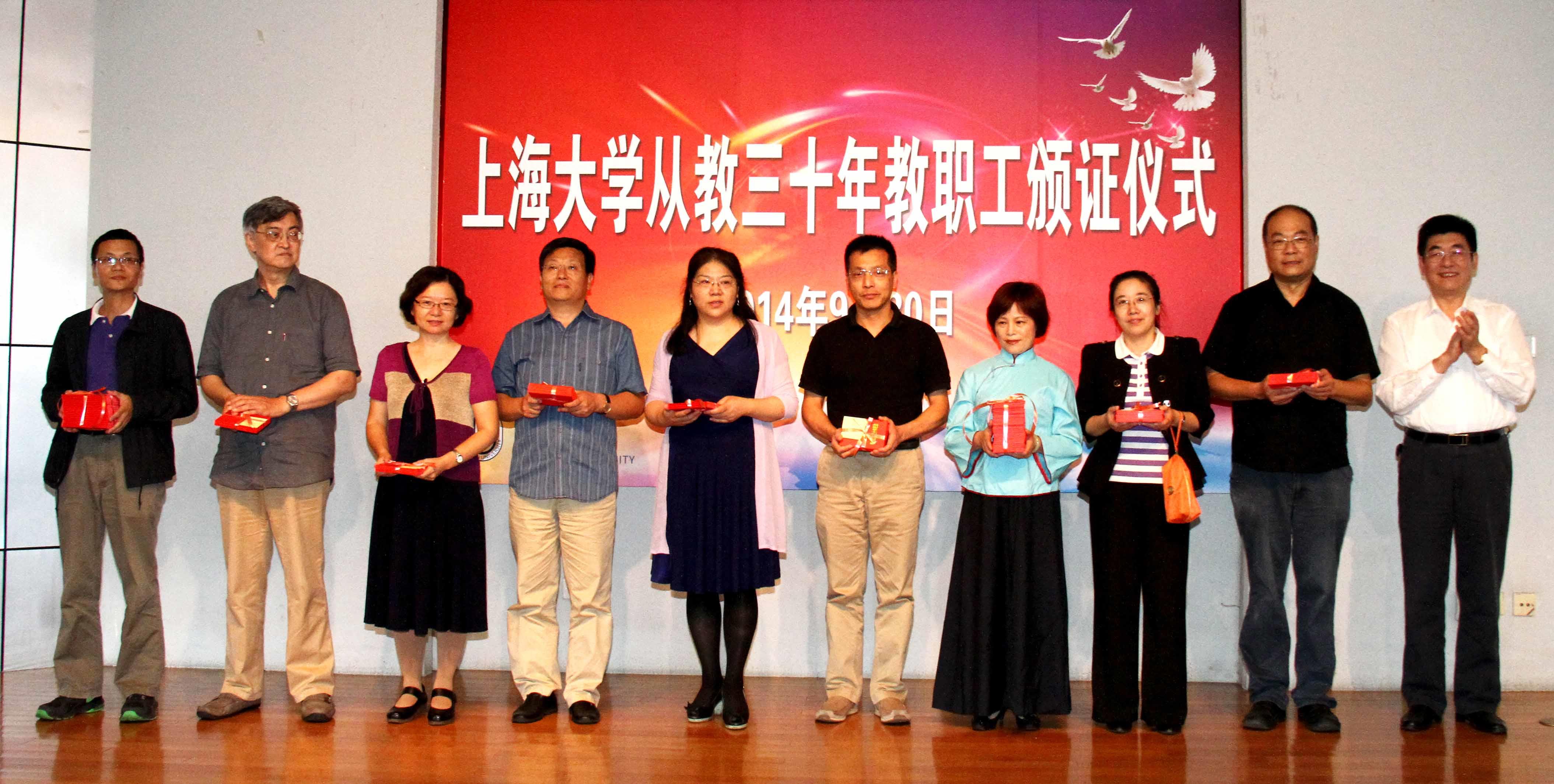 30年,路漫漫;30年,情悠悠。30年,对别人可能只是一个数字;但是对经历了30年风雨,并培养了一批又一批国家栋梁之才的教师来说,其意义非凡。今年也是忻平同志从教30年,他代表校工会、妇委会作了讲话。他指出,8858cc永利官网在短短20年的时间里,在包括与会同志在内的全体师生员工的共同努力下,取得了许多重要的进展。学校的发展与每一个教职员工的发展是紧密相连的,希望大家都能够在实现“上大梦”、“中国梦”的进程中实现人生出彩的美好愿望。他表示,在座的各位老师虽然已经走过了人生的大半路程,但是后面的路各位肩上的担子更重,责任更大,更要走好,要继续为学校的发展发挥光和热,要让青年教师接过我们手中的接力棒。来自理学院的陈立群教授、文学院的张寅彭教授、机自学院的费敏锐教授以及机关系统、信访办主任余志龙老师和大家一起分享了他们从教30年的故事。几位老师回顾了他们投入大量时间和精力提高教学质量,从事科学研究、管理工作,与学生一起成长的历程,并表示感谢学校为他们提供了发展的平台,他们将更加努力地工作,为青年教师做好“传帮带”。简单、质朴的言语中传递着从教30年教师们健康、积极、乐观的正能量。