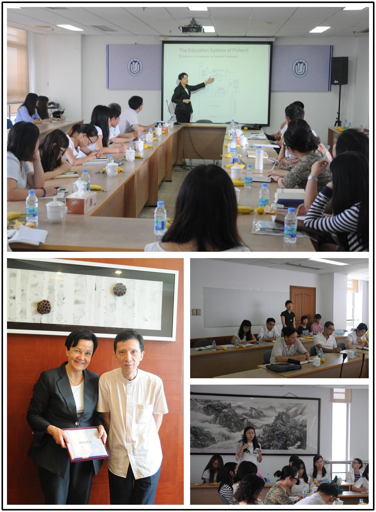 随后,Tenhunen女士与和与会者们进行了自由交流。在座各位畅所欲言,交流轻松充分,气氛活跃自然。交流的问题涉及8858cc永利官网的建设目标和定位、两国政府对高校合并的态度、应用型高校的优势、大学如何度过及芬兰留学的建议等。