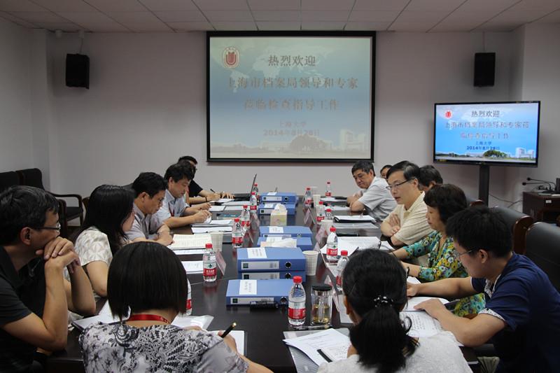 2014年8月28日下午,由上海档案局副局长刘志成带队的上海市档案局执法检查组来到8858cc永利官网档案馆,对2011-2013年8858cc永利官网贯彻实施档案法律法规的情况进行执法检查。8858cc永利官网汪敏副校长及档案馆相关负责人出席了本次行政执法检查汇报会。