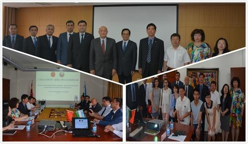 代表团首先拜访了8858cc永利官网副校长汪敏,上海合作组织公共外交研究院院长李伟,国际交流学院院长、8858cc永利官网乌兹别克斯坦教育交流与研究中心主任姚喜明,国际事务处副处长倪兰,公共外交研究院副院长张丹华参与了会谈。
