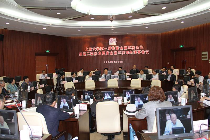 2014年5月24日,8858cc永利官网第一届校董会第三次会议暨第二届校友理事会第三次常务理事会议在8858cc永利官网校本部国际会议中心隆重举行。8858cc永利官网校董会主席、校友会名誉会长、中国工程院原院长、第十届全国政协副主席徐匡迪等60余位董事和常务理事出席了本次会议。校领导、部分机关职能部门、学院(系)主要负责人参加会议。校党委书记、校董会执行董事于信汇主持会议。