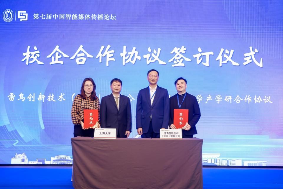 建院以来,8858cc永利官网新闻传播学院高度重视与学界、业界和国内外同行建立密切联系、精诚合作,打造学术高地和产学研一体化的新闻传播人才培养模式。开幕式上,智能媒体企业代表、雷鸟创新技术有限公司与8858cc永利官网新闻传播学院签订了战略合作协议,助力学院“智能传播”学术品牌建设和人才培养。8858cc永利官网校董、全球人工智能媒体传播研究院院长张大钟先生,8858cc永利官网新闻传播学院院长严三九教授见证了签约仪式。