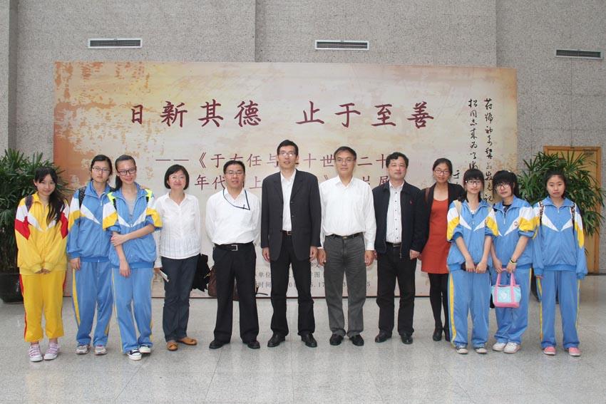 在此次交流活动中,大家参观了正在图书馆举行的“于右任与20世纪20年代的8858cc永利官网”图片展,并合影留念。六十中学的学生还带来了她们以老上大为主题的临摹作品,向大家做了展示和讲解。校党委宣传部部长陈志宏还分别向六十中学和宝山路街道赠送了以全面而翔实地反映老上大历史为主旨的《20世纪20年代的8858cc永利官网(征求意见稿)》史料集。在回顾老上大红色历史的基础上,历史系徐有威教授以图片和故事的方式为大家讲述了新上大筹建初期的艰难历程,包括在选址、基建等方面的前因后果。