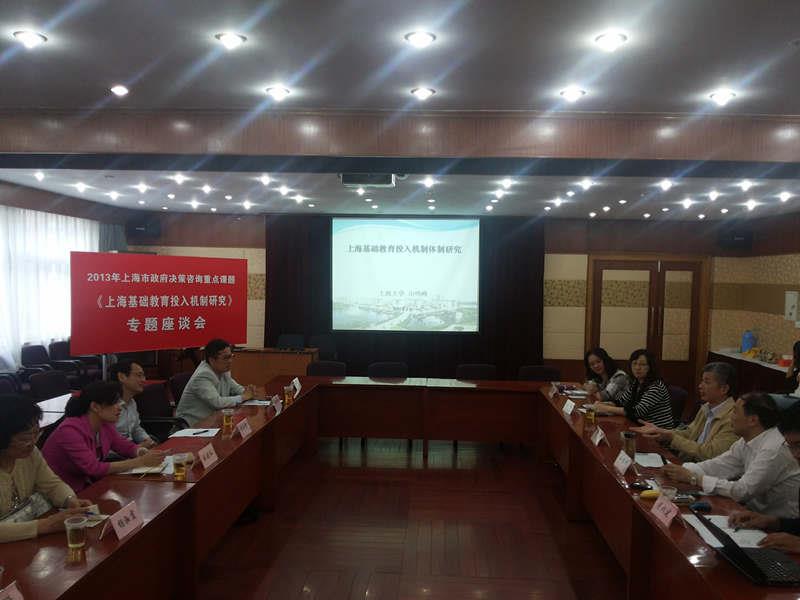 5月30日下午,2013年上海市政府决策咨询重点课题专题座谈会,在永利官网延长校区科技楼8楼会议室举行。市教委人事处副处级调研员李捷,来自黄浦、虹口、杨浦、闸北、松江、闵行六区部分市重点中学,著名初级中学、小学共10位校长应邀出席,会议由8858cc永利官网公共人力资源研究所所长山鸣峰主持。