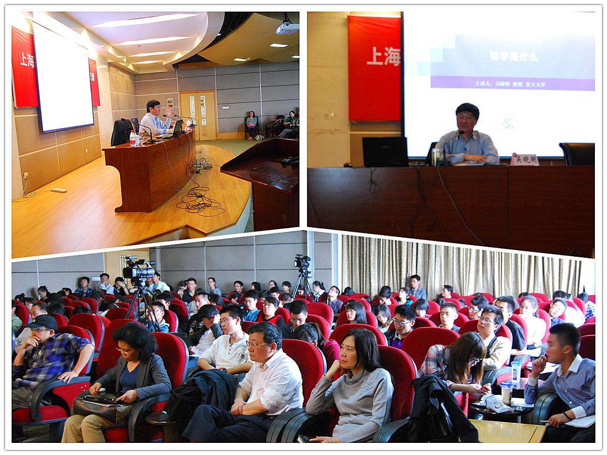 讲座伊始,吴晓明教授澄清了对哲学的两种普遍的偏见:哲学与时代无关,哲学与多数人无关。然后,吴教授从三个侧面,阐述了他对哲学的深刻理解:一是作为一般智慧或思想的哲学,吴晓明教授认为,哲学是一个民族生活的基本形式,并且从一定程度上决定了民族的命运;二是作为形而上学的哲学,吴教授阐述了西方哲学传统中“两个世界”的理念,并对西方哲学与中国哲学进行了比较;三是作为批判方法的哲学,吴教授指出,哲学批判的要旨不是否定某一理论,而是 “澄清前提,划定界限”。在整个报告中,吴晓明教授旁征博引,对于黑格尔、韦伯、马克思等伟大思想家的观点信手拈来,并运用了不少历史上的及现实生活中的例子,生动而又幽默,深入浅出、引人入胜。